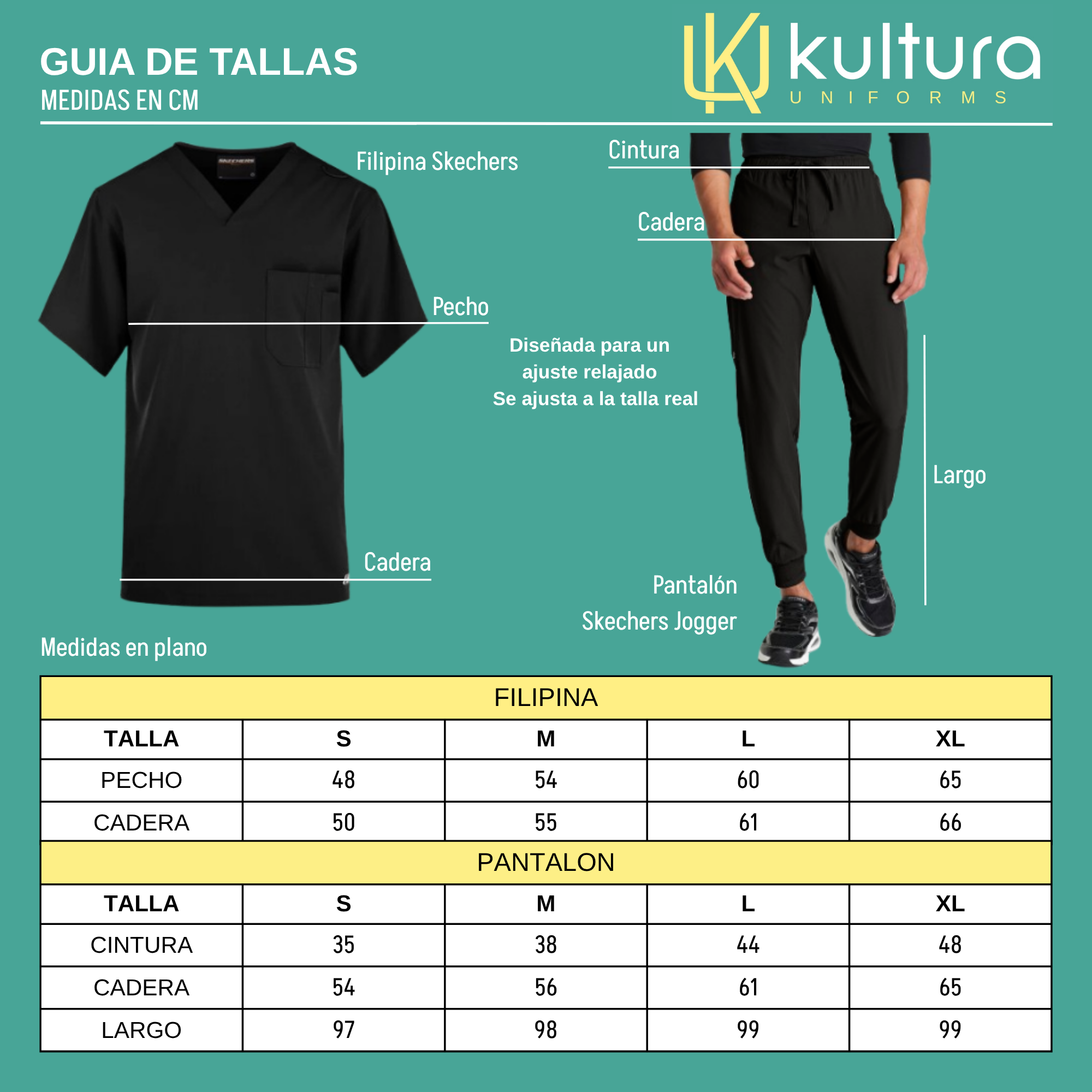 - Ajuste perfecto: El uniforme se ajusta a las medidas estándar, por lo que puedes elegir la talla que usualmente usas sin preocuparte por variaciones.